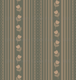 Grandmillennial Tulips and Lace Stripes - Khaki