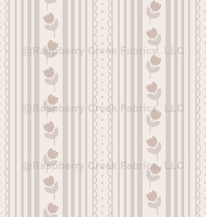 Grandmillennial Tulips and Lace Stripes - Light Grey