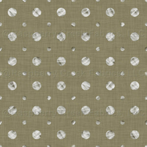 Large and small polka dots with a diagonal scribbled texture in gray and white create a fun design on bay leaf green with a loose texture.