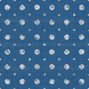 Large and small polka dots with a diagonal scribbled texture in gray and white create a fun design on Pacific blue with a loose texture.