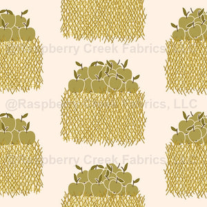 Green Apples and Haybales {on Cream / Off White / Ivory} Fruit on Straw Haystacks // Apple Harvest