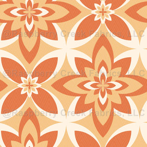 An oversized floral print featuring tonal orange dahlias in a refined 70s boho style. Perfect for retro-inspired interiors, fall themes, statement apparel, & wallpaper.