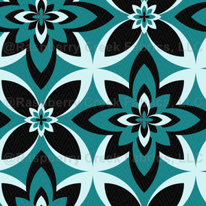 An oversized floral print featuring teal blue and noir black dahlias in a refined 70s boho style. Perfect for moody retro-inspired interiors, dark girly themes, statement apparel, & wallpaper.