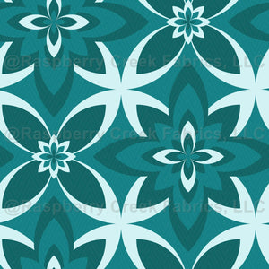 An oversized floral print featuring monochromatic teal dahlias in a refined 70s boho style. Perfect for retro-inspired interiors, spring themes, statement apparel, & wallpaper.
