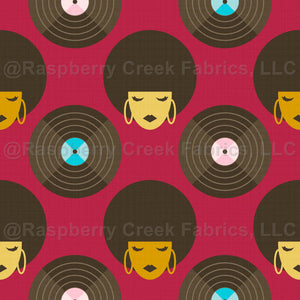 A bold and vibrant retro design featuring an Afro woman with statement earrings, surrounded by vinyl records. Inspired by the disco era, this pattern brings a funky and stylish touch to any project. Perfect for those who love vintage vibes and standout prints!
