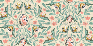 Charming floral design with elegantly painted Easter eggs growing along delicate vines, perfect for springtime celebrations.