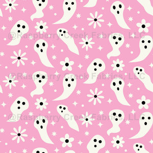 This is cute Halloween ghosts with retro 70s flowers on pink