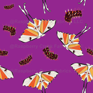 Halloween Luna moths and caterpillars on red background. Fall pattern in deep red tones. Original design by Danny's Remake Remodel©