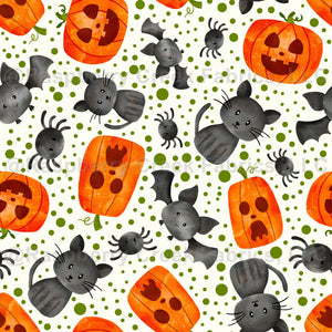 Halloween Orange Pumpkins Black Cats Spiders and Bats on Ivory