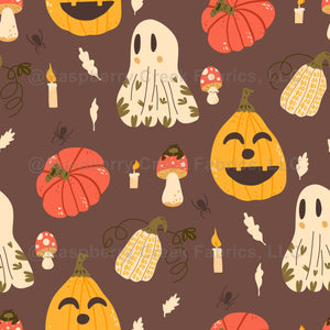 Halloween pumpkins, holiday ghosts, mushrooms