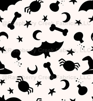 Halloween spokes, bats, bones, spiders, stars, moons, witch, potions