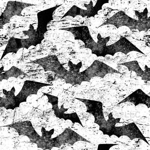 Halloween watercolor grunge pattern with flying bats. Black and white