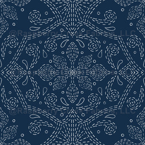 Hand-drawn Floral Damask Linework, White on Navy Blue, flowers, swirls, sun, bohemian, boho