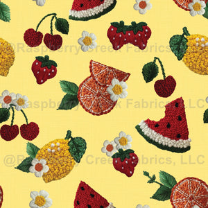 Hand Embroidered Summer Fruits on Yellow Linen