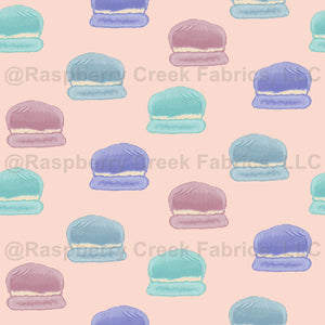 Hand painted French macaroons perfect for a sweet treats parlor and bakery store on a light peach background