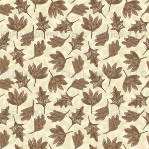 Hand-painted light brown watercolor autumn leaves on a light beige/yellow background with a textured background.