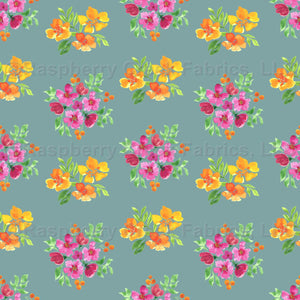 Hand-painted pink and orange two floral arrangements in Zig Zag layout on a light teal color background.
