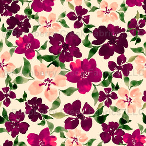 Hand painted watercolor florals in deep merlot red, pink, and peach on a lovely cream color background.