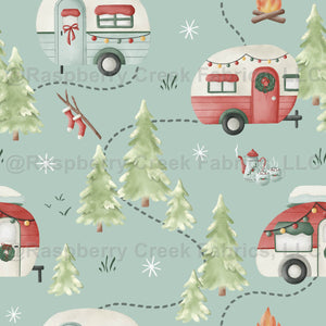 The heart of the Happy Camper Christmas collection, this hero pattern brings the whole scene to life. Vintage trailers decked in holiday lights, surrounded by snow-dusted trees and twinkling stars. A charming focal print that ties together all the coordinating designs in the set.