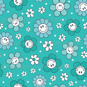 Happy Face Daisies Turquoise Blue