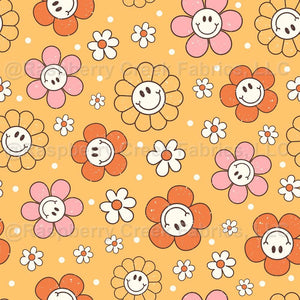 Happy Fall Smiley Face Daisy Flowers on Butternut Yellow