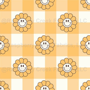 Happy Fall Smiley Faces on Butternut Yellow Gingham