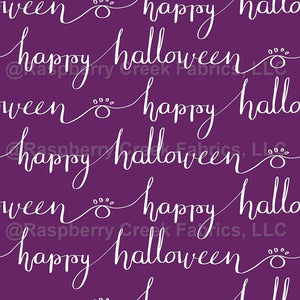 A cute halloween print for dogs and pets. "happy halloween" calligraphy print in purple and white with the sweetest little paw prints