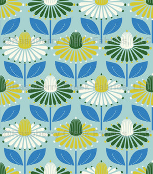 Happy retro coneflowers teal Good mood retro flower pattern. Reworked from the flower power aera. Fresh colors.