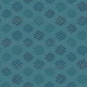 Hashmarks arranged in a grid, for a unique take on a modern check, in shades of blue.