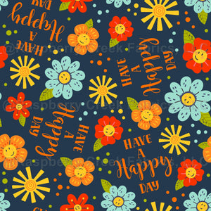 Have a Happy Day Smiley Face Flowers and Sunshine on Navy