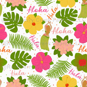 Tropical Hawaiian Flower Aloha Hula Woman Off White Background.
