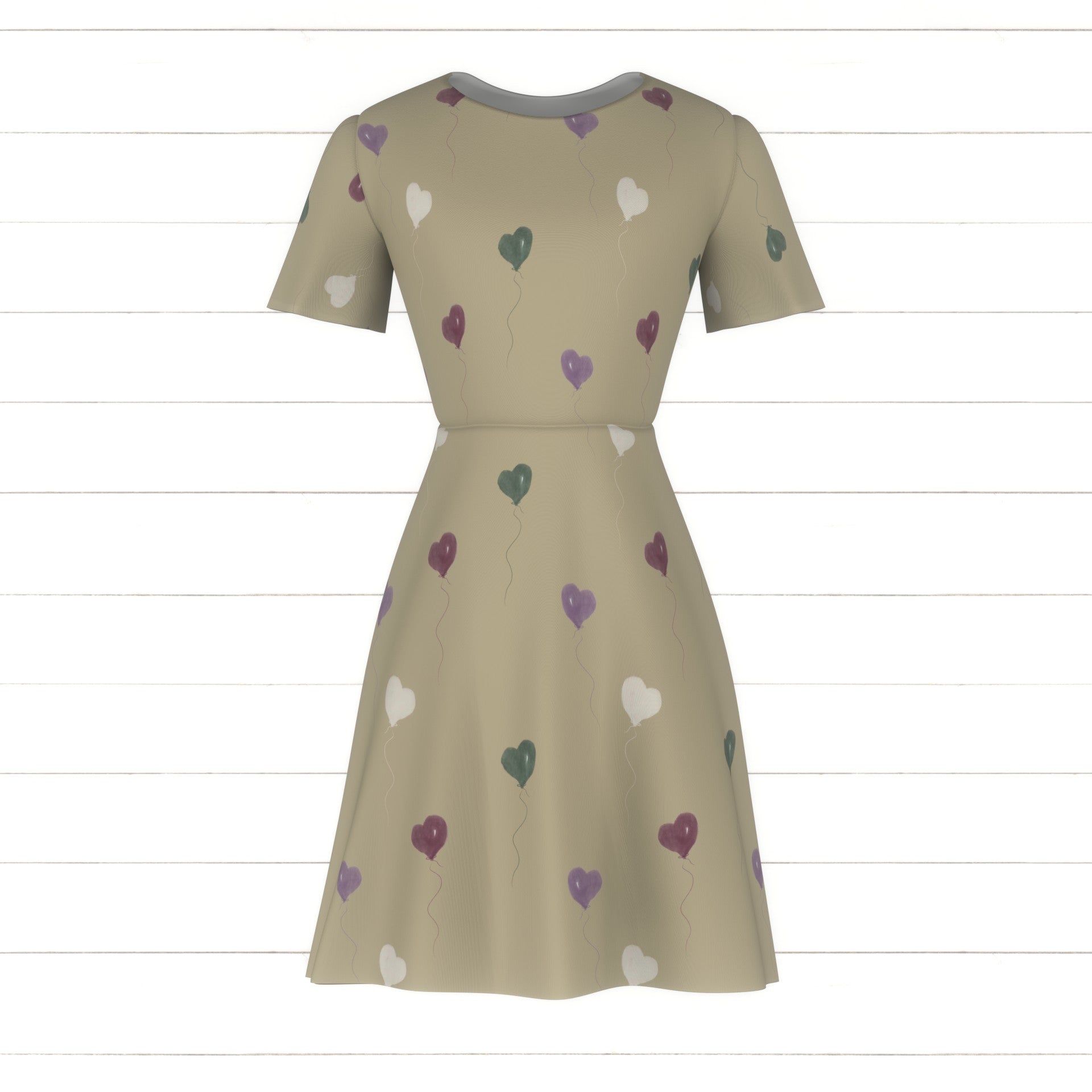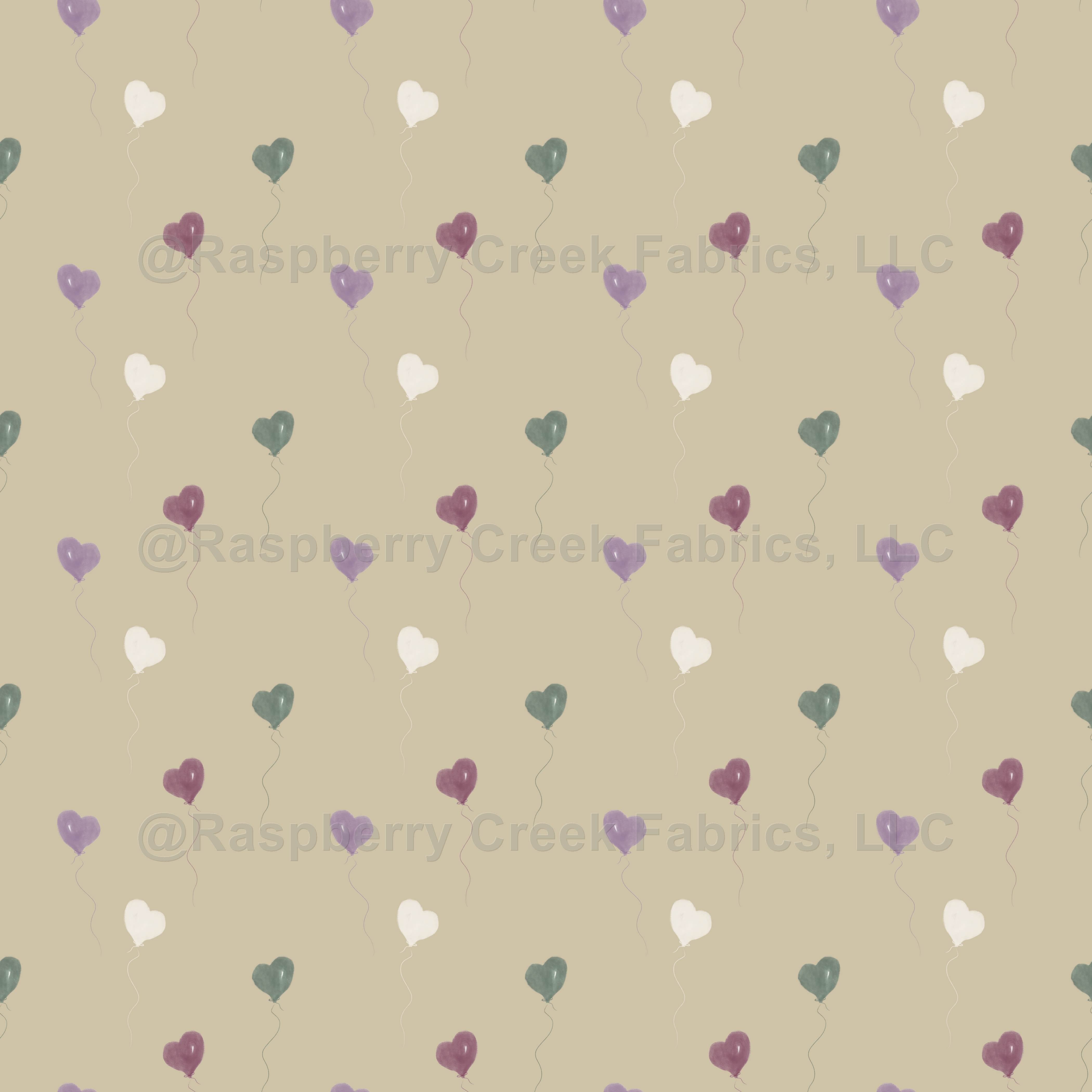 Heart Balloon, Vintage, Valentines Day, Oatmeal, pink, purple, cream, green