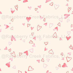 Delicate heart pattern with pink and red hearts on a neutral beige background. Perfect for a pastel heart aesthetic in preppy decor, crafts, or fashion.