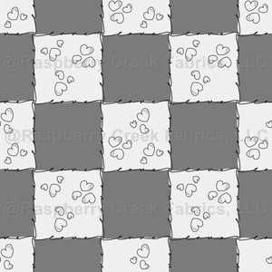 Hearts and love checkerboard in hand-drawn lineart – love leverage collection – white grey black – Fun modern twist on the classic checkerboard in a valentines color palette. Spread some love and decorate your table and house with this fabric