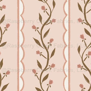 Heritage Botanical Scallop Stripe - Flower Buds and Leaf Vines // Cottage Meadow