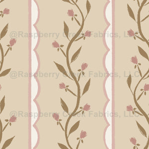 Heritage Botanical Scallop Stripe - Flower Buds and Leaf Vines // Cottage Meadow