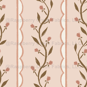 Heritage Botanical Scallop Stripe - Flower Buds and Leaf Vines // Cottage Meadow