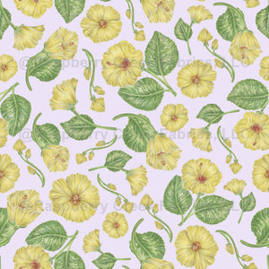 Apart of Erica Catherine's US State Flower Collection, the Hibiscus Flower represents the State of Hawaii. The tropical yellow flowers are shown on top of a purple color background. Each piece is first hand drawn by Erica Catherine using graphite and watercolor to create a vintage inspired feeling.