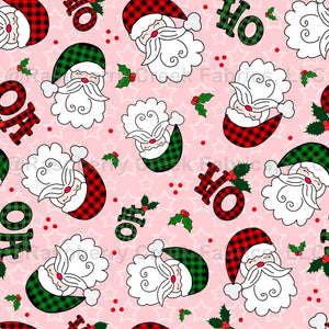 Ho Ho Santas with Buffalo Plaid Checker Hats on Pink
