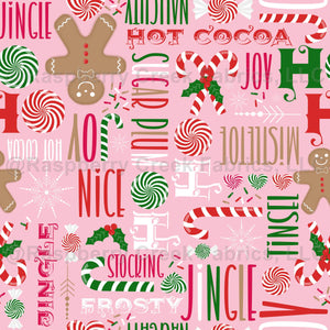 Holiday Words Christmas Print. Fun mix of words, gingerbread men, snowflakes, sprinkles, candycanes and holly. Perfect for any holiday sewing or quilting projects.