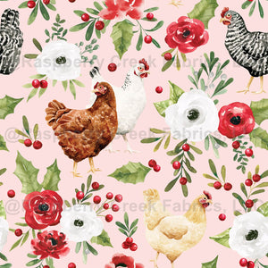 Watercolor Christmas Chicken Floral by Cate and Rainn® © Cate and Rainn. All rights reserved.