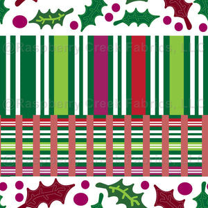 Traditional red, white, and green holly leaves and strip and plaid divided sections by V. Campos-Hallstrom/ Club Creative Art. Part of the Holly Jolly Plaid & Stripe Series.