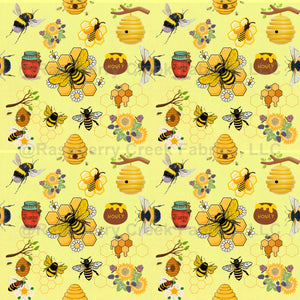 Honey Bee Hum Fabric Design, Yellow Summer fabric apparel home decor, Things the Fly Collection
