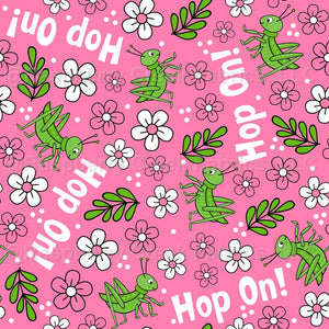 Hop On! Sweet Green Grasshoppers and Flowers in Pink