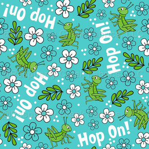 Hop On! Sweet Green Grasshoppers with Blue and White Flowers