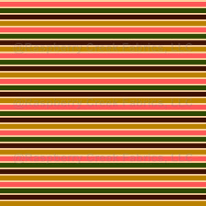 Traditional, horizontal stripes in Fall Green, Brown, Salmon pink, Gold, and Peach. Coordinate for the Fall Floral and Pumpkins Collection. Seasonal. Fabric, Home Decor, blender.