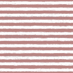 Horizontal white distressed stripes on dusty rose. Stripes appx. one inch wide at full scale, at 12" repeat, stripes are appx. half an inch wide.