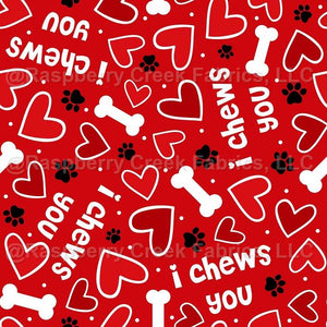 I Chews You Puppy Love Valentine Hearts Dog Bones and Paw Prints in Red