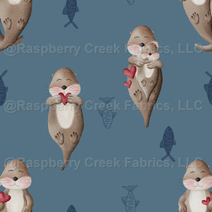 I Otter Love You - Otters, Fish and Hearts - Slate Blue