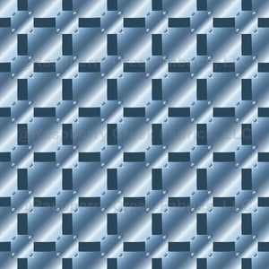 Ice blue on teal riveted square metal plates in a gradient Industrial texture with metallic shine effect, for steampunk, modern décor, costumes, cosplay, quilting, unique fabric accents and projects.